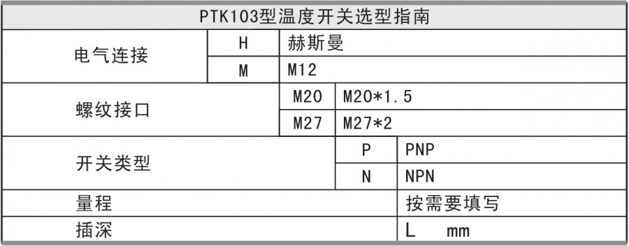 PTK103智能溫度開關是集溫度測量、顯示、輸出、控制于一體的智能數(shù)字壓力測控產(chǎn)品。不銹鋼接頭、高精度PT100、全數(shù)字電路板組成,顯示直觀,操作簡單,安全可靠,開關點現(xiàn)場設置。廣泛應用于水電、自來水,石油、化工、機械、液壓等行業(yè),對流體介質的溫度進行測量和控制。